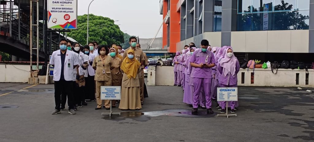 Direksi dan Civitas Hospitalia RSUD Dr. Moewardi melaksanakan Apel Pagi perdana di Halaman Gedung Aster RSUD Dr. Moewardi, Senin (02/01/2023).