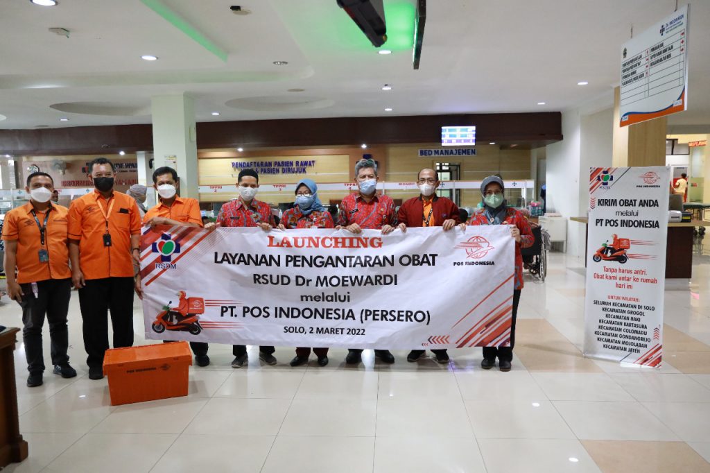 RSUD Dr. Moewardi melakukan launching Layanan Pengantaran Obat bersama PT. Pos Indonesia (Persero) pada Rabu, 2 Maret 2022 di Gedung Wijaya Kusuma Lt.1.