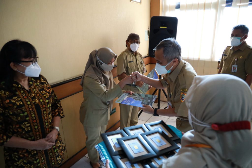 Penyerahan SK tersebut dilanjutkan dengan Pelepasan secara resmi dan Pemberian Cinderamata Bagi Pegawai Yang Memasuki Masa Purna Tugas Periode Juli – September 2021.